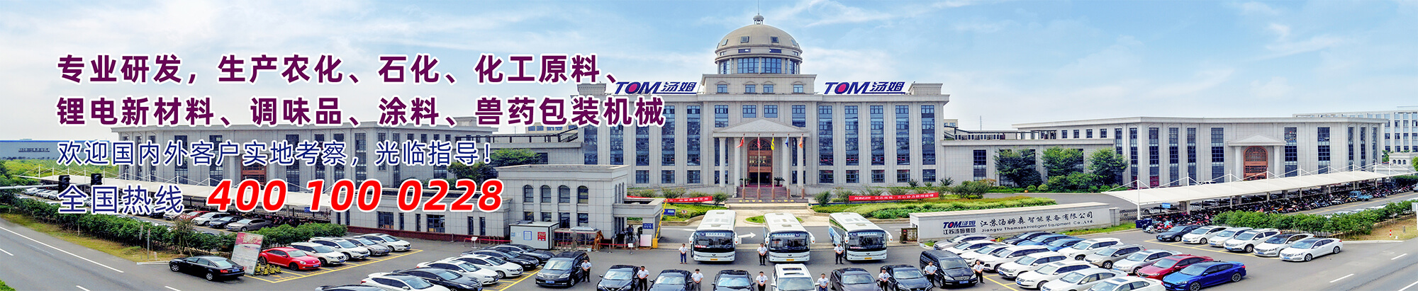 江蘇湯姆森智能裝備有限公司 是江蘇湯姆集團旗下全資子公司,坐落于常州市金壇區儒林鎮99號,是專業生產農化、日化、潤滑油、涂料、化工、調味品、鋰電新材料智能包裝裝備的廠家,工廠占地150畝,建筑面積120558㎡,擁有員工800多人,博士生2名,碩士研究生30名,本科358名,目前已取得ISO9001質量體系認證、ISO14001環境管理體系認證、OHSAS18001職業健康安全體系認證、CE認證。26年來,經過湯姆人的艱苦奮斗,湯姆集團不斷創新發展、與時俱進,為4000多家企業提供了一代又一代先進的智能包裝設備,為客戶打造工業4.0智能化工廠;為客戶提供自動化立體倉庫;為客戶創建智慧工廠生產數據采集執行系統(MES)。 了解更多>>
